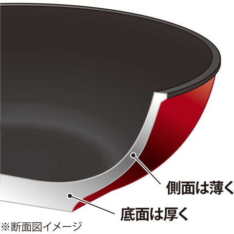 この厚底で熱を充分に蓄え、全体を均一に加熱できるので、おいしく調理することができます。