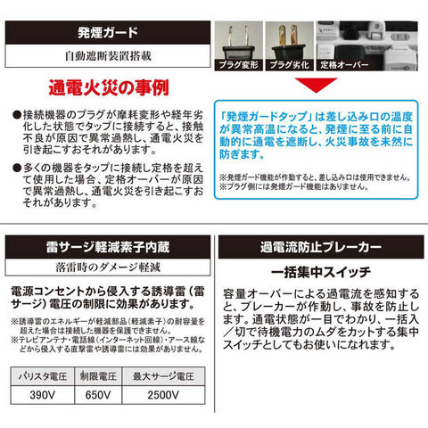 オーム電機 発煙ガードスイッチ付タップ [直挿し /2個口 /スイッチ付き(一括)] HS-A2PH-Wのレビュー