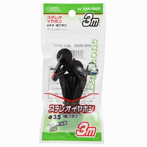 オーム電機 ステレオイヤホン 3m [φ3.5mm ミニプラグ] EAR-0025