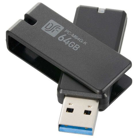 オーム電機 フラッシュメモリ USB3.1Gen1(USB3.0) 64GB 高速データ転送 ブラック[64GB /USB TypeA /USB3.1 /回転式] PC-M64G-K