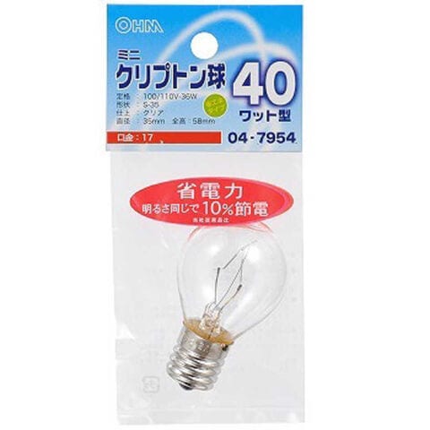 オーム電機 電球 ミニクリプトン球 クリア [E17 /電球色 /1個 /一般電球形] [LBS3740KC] LB-S3740K-C
