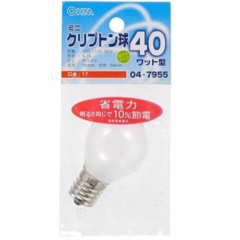 オーム電機 電球 ミニクリプトン球 ホワイト [E17 /電球色 /1個 /一般電球形] [LBPS3740KW] LB-S3740K-W