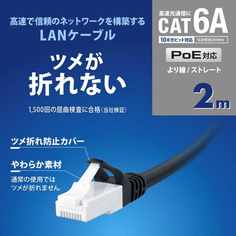 オーム電機 つめが折れないLANケーブル CAT6A 2.0m [2m /カテゴリー6A /スタンダード] ブラック PC-N6A20-K