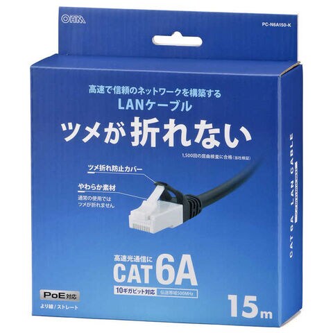 オーム電機 つめが折れないLANケーブル CAT6A 15.0m [15m /カテゴリー6A /スタンダード] PC-N6A150-K