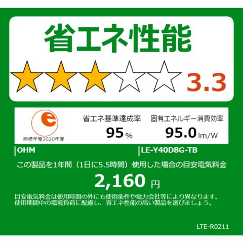 固有エネルギー消費効率(lm/w):95.0lm/w