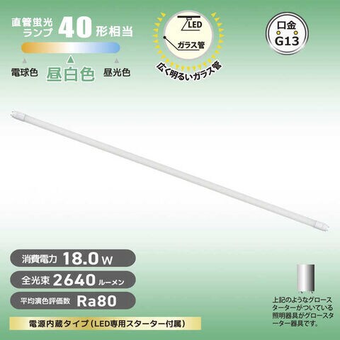 オーム電機 直管LEDランプ 40形相当 昼白色 グロースターター器具専用 [G13 / 昼白色] LDF40SSN/18/267C