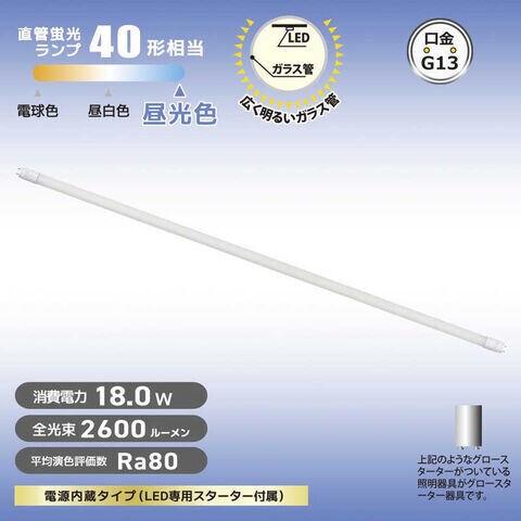オーム電機 直管LEDランプ 40形相当 昼光色 グロースターター器具専用 [G13 / 昼光色] LDF40SSD/18/267C