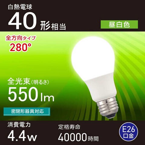 オーム電機 LED電球 [E26 /一般電球形 /40W相当 /昼白色 /1個 /全方向タイプ] LDA4N-G AG59