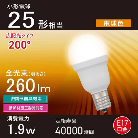 オーム電機 LED電球小形 [E17 /一般電球形 /25W相当 /電球色 /1個 /広配光タイプ] LDA2L-G-E17 IS53のレビュー