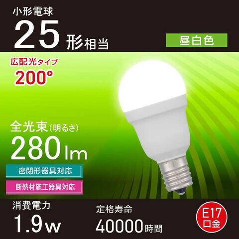 オーム電機 LED電球小形 [E17 /一般電球形 /25W相当 /昼白色 /1個 /広配光タイプ] LDA2N-G-E17 IS53