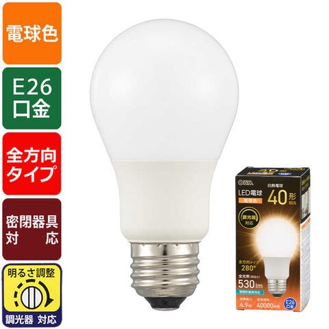 オーム電機 LED電球 E26 40形相当 調光器対応 電球色 [E26 / 一般電球形 / 40W相当 / 電球色 / 1個] LDA5LG/DAG5のレビュー