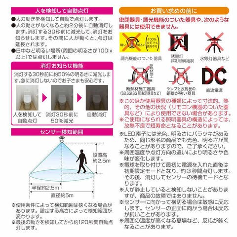 ● 急に消えないから安心、消灯お知らせ機能(消灯の30秒前に50%減光)付き