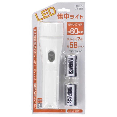 オーム電機 LED懐中ライト [LED 単2乾電池×2] [LHP05C5] LHP-05C5