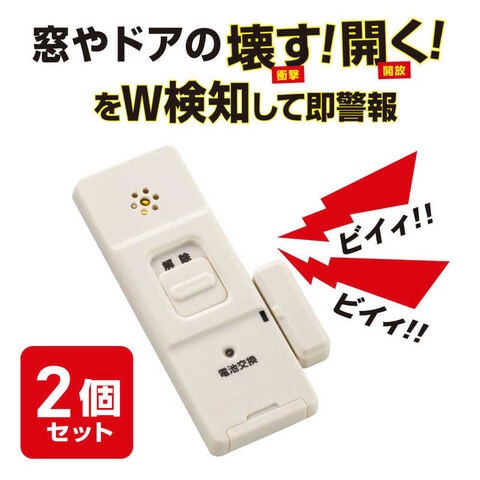 オーム電機 防犯アラーム 衝撃+開放検知型 2個セット 白 OSE-AWOS2W25