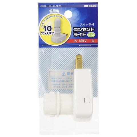 オーム電機 コンセントライト スイッチ付 E12電球用 HS-LCL12-W