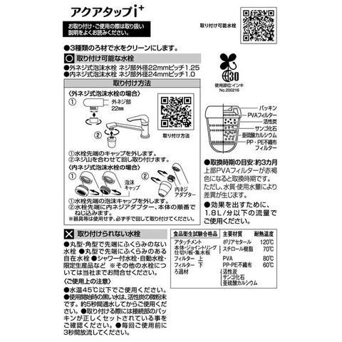 仕様2:取り付け可能水栓:泡沫水栓(外ネジ式、内ネジ式)