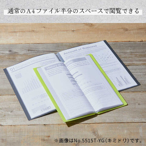 ●クリアーファイルは、通常のA4ファイル半分のスペースで閲覧できる。