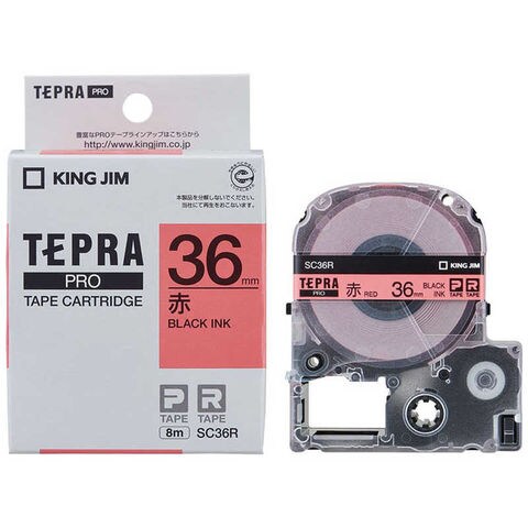キングジム テプラ カラーラベルテープ(赤テープ/黒文字/36mm幅) SC36R