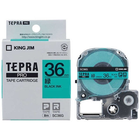 キングジム テプラ カラーラベルテープ(36mm幅) SC36G (緑テープ×黒文字)
