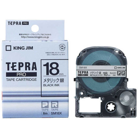 キングジム カラーラベルテープ 「テプラPRO」(メタリック銀テープ/18mm幅) SM18X (銀)