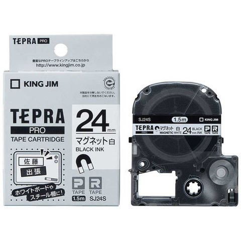キングジム マグネットテープ 「テプラPRO」(白テープ/黒文字/24mm幅) SJ24S (白)