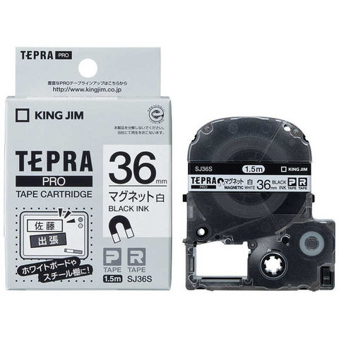 キングジム マグネットテープ 「テプラPRO」(白テープ/黒文字/36mm幅) SJ36S (白)