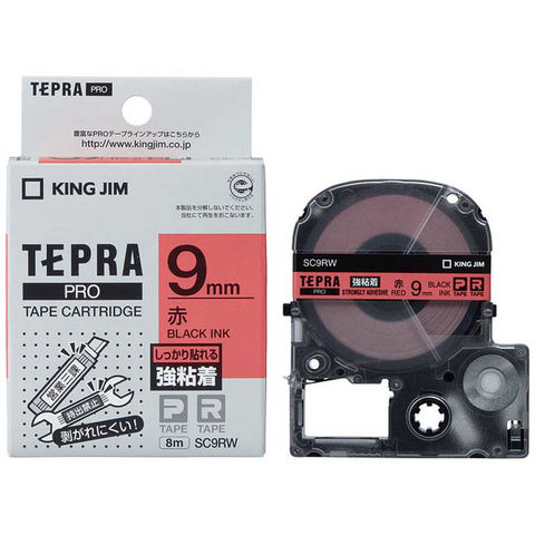 キングジム 強粘着ラベルテープ 「テプラPRO」(赤テープ/黒文字/9mm幅) SC9RW (赤)
