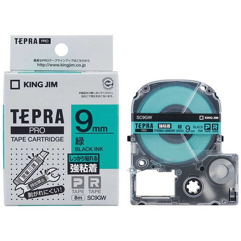 キングジム 強粘着ラベルテープ 「テプラPRO」(緑テープ/黒文字/9mm幅) SC9GW (緑)