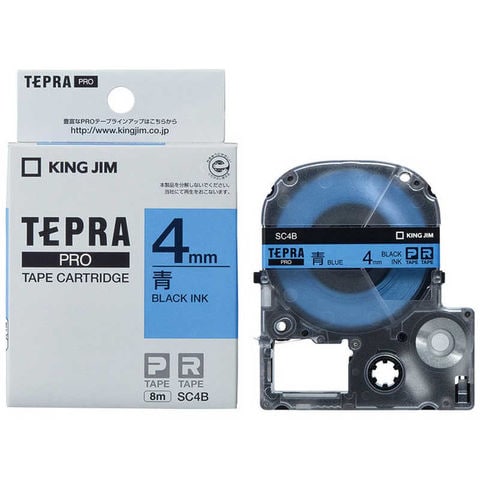 キングジム テプラ カラーラベルテープ(青テープ/黒文字/4mm幅) SC4B