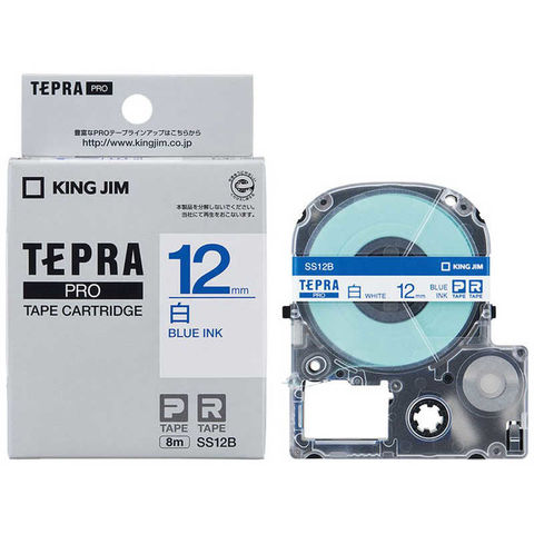 キングジム 白ラベルテープ 「テプラPRO」(白テープ/青文字/12mm幅) SS12B (白)
