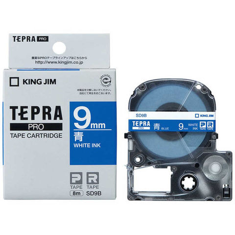 キングジム カラーラベルテープ 「テプラPRO」(青テープ/白文字/9mm幅) SD9B (青)