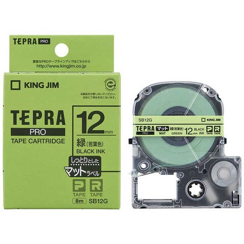キングジム カラーラベルテープ 「テプラPRO」(若葉色テープ/12mm幅) SB12G (緑(若葉色))