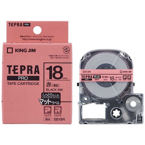 キングジム カラーラベルテープ 「テプラPRO」(薄紅テープ/黒文字/18mm幅) SB18R (赤(薄紅))