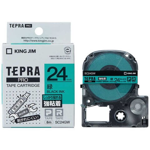 キングジム 強粘着ラベルテープ 「テプラPRO」(緑テープ/黒文字/24mm幅) SC24GW (緑)