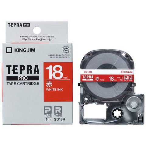 キングジム テプラ カラーラベルテープ(赤テープ/白文字/18mm幅) SD18R