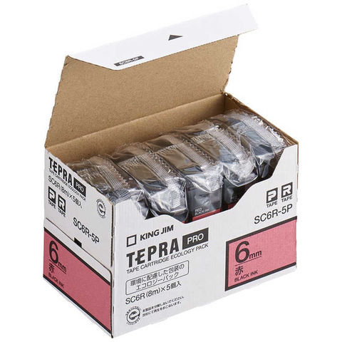 キングジム カラーラベルテープ 「テプラPRO」(赤テープ/6mm幅・5個パック) SC6R‐5P (赤)
