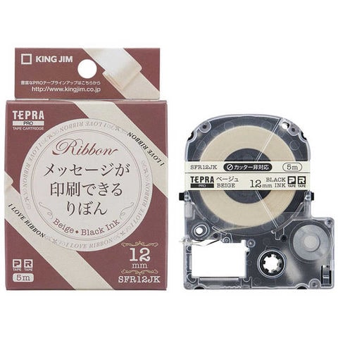 キングジム PROテープカートリッジ りぼん (ベージュ/黒文字/12mm幅) SFR12JK (ベージュ)