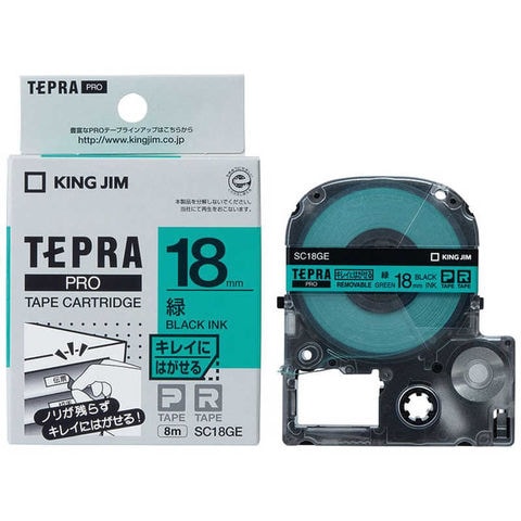 キングジム テプラ きれいにはがせるラベルテープ(18mm幅) SC18GE (緑/黒文字)
