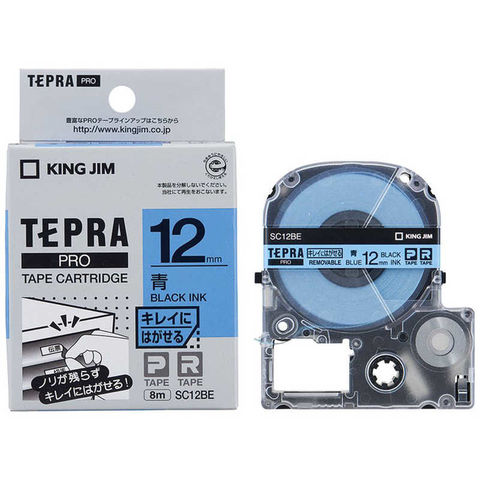 キングジム テプラ きれいにはがせるラベルテープ(12mm幅) SC12BE (青/黒文字)