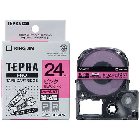 キングジム テプラ 強粘着ラベル(24mm幅) SC24PW (ピンク/黒文字)
