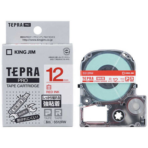 キングジム テプラ 強粘着ラベル(12mm幅) SS12RW (白/赤文字)