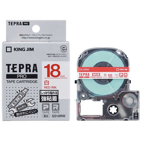 キングジム テプラ 強粘着ラベル(18mm幅) SS18RW (白/赤文字)