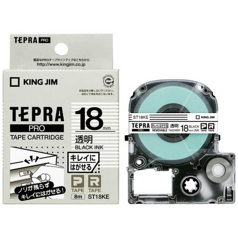 キングジム テプラ(TEPRA) キレイにはがせるラベル(透明テープ/黒文字/18mm幅) ST18KE