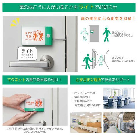 累計販売数85000個を超えた、「扉につけるお知らせライト(TAL10/TAL20)」がリニューアル!全方位から「お知らせ」を確認しやすいフレームレスデザインに変更しました。