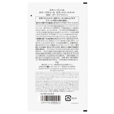 コーセー STEPHEN KNOLL (スティーブンノル) カラークチュール カラートリートメント トライアル 002 ダークブラウン (15g)