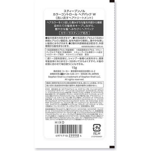 コーセー STEPHEN KNOLL (スティーブンノル) カラーコントロール ヘアパックW トライアル (15g)