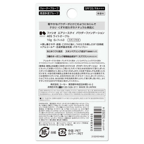 コーセー FASIO (ファシオ) エアリーステイ パウダーファンデーション (レフィル) 405 ライトオークル (10g)