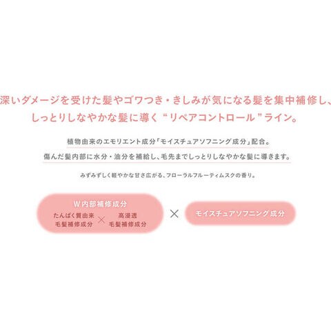 日々のダメージが蓄積し、深いダメージを受けた髪やゴワつき・きしみが気になる髪を集中補修し、しっとりしなやかな髪に導く“リペアコントロール” シャンプー。