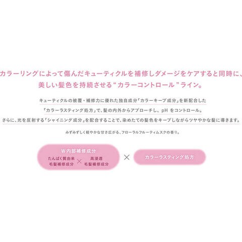 カラーリングによって傷んだキューティクルを補修しダメージをケアすると同時に、美しい髪色を持続させる“カラーコントロール”シャンプー。