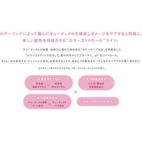 ・「W 外部補修成分」配合。ヘアカラーで乱れたキューティクルを補修し、ツヤやかな髪に導きます。